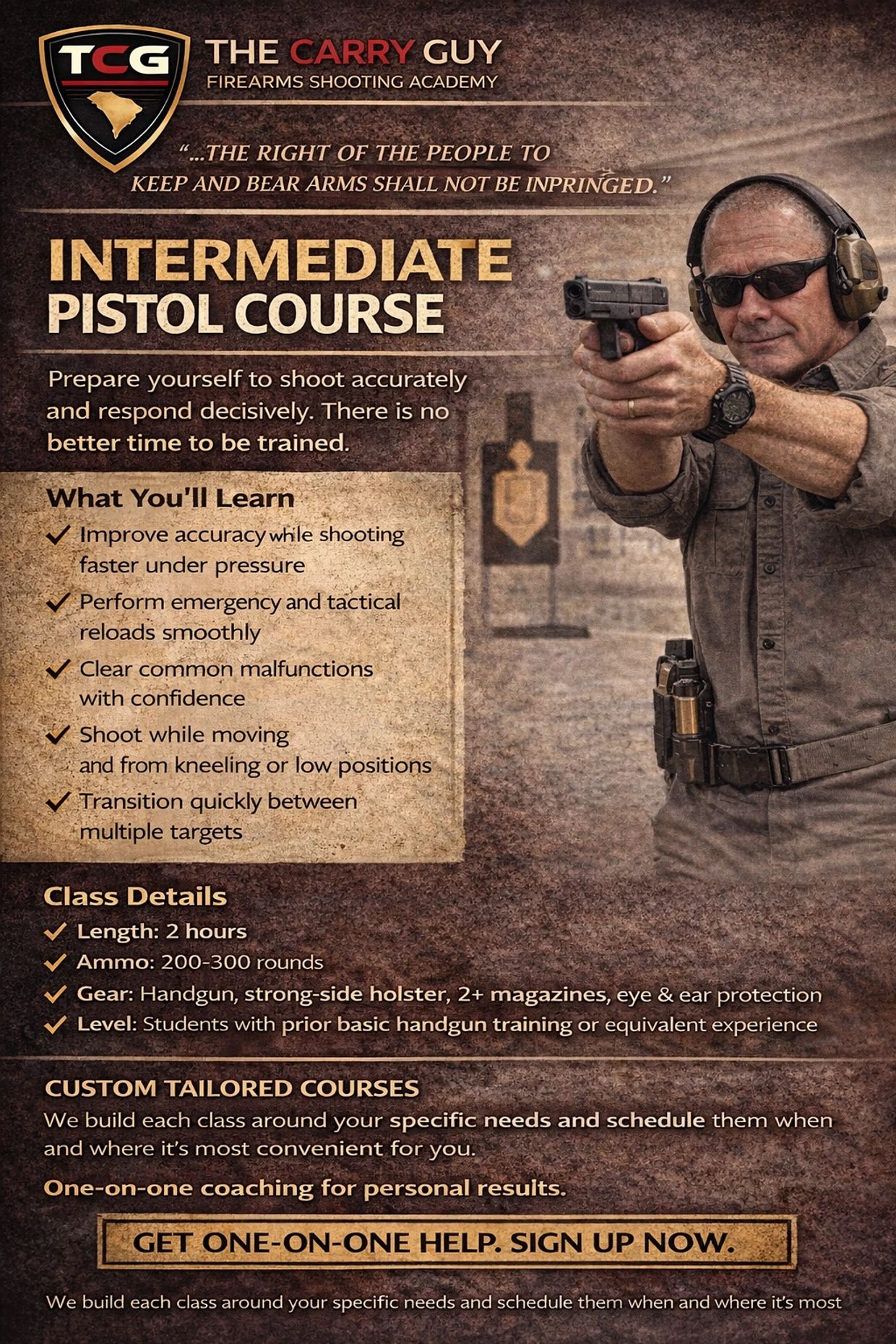 Ready to move beyond the basics? This intermediate-level course is designed for shooters who already know safe handling and want to build speed, accuracy, and confidence in real defensive scenarios.