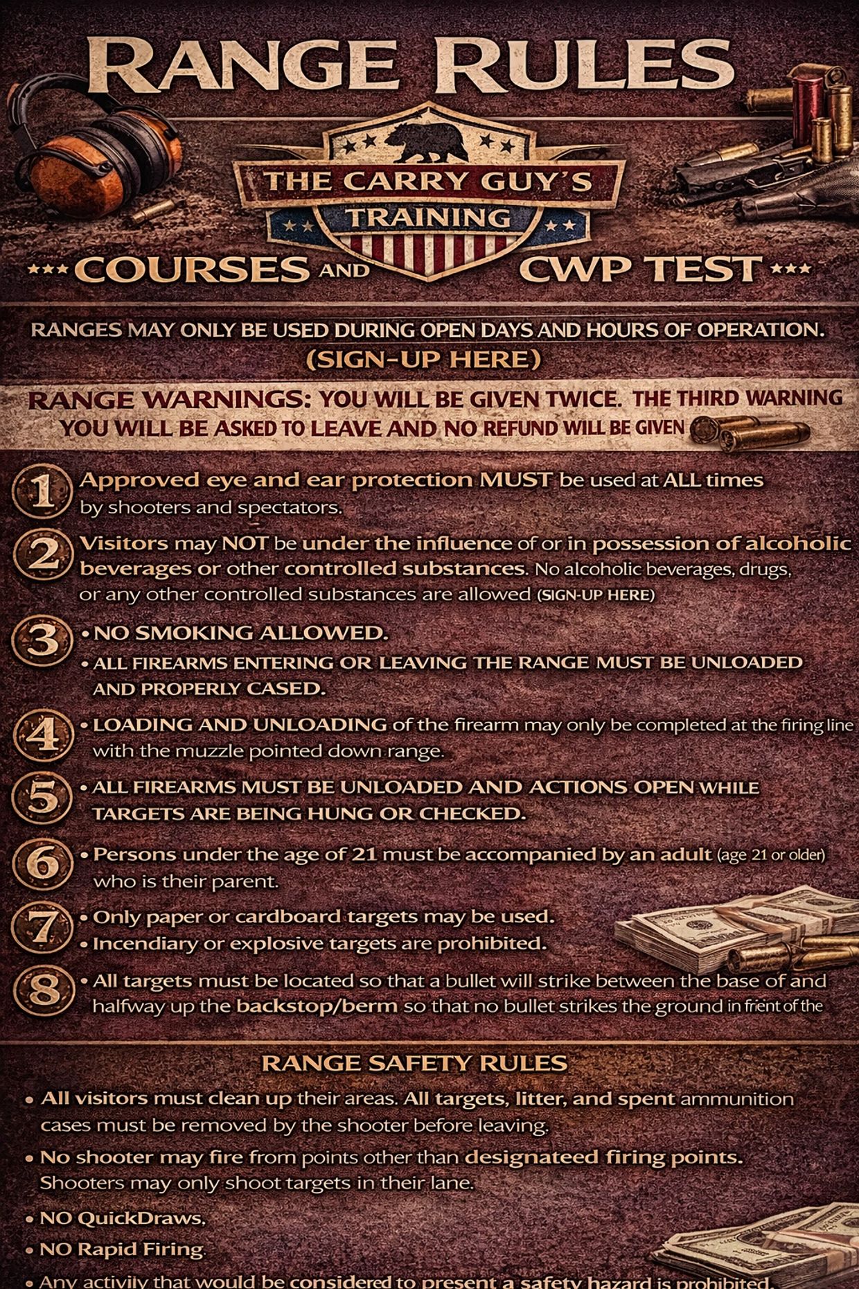 THE CARRY GUY’S •• TRAINING COURSES AND CWP TEST RANGE RULES••